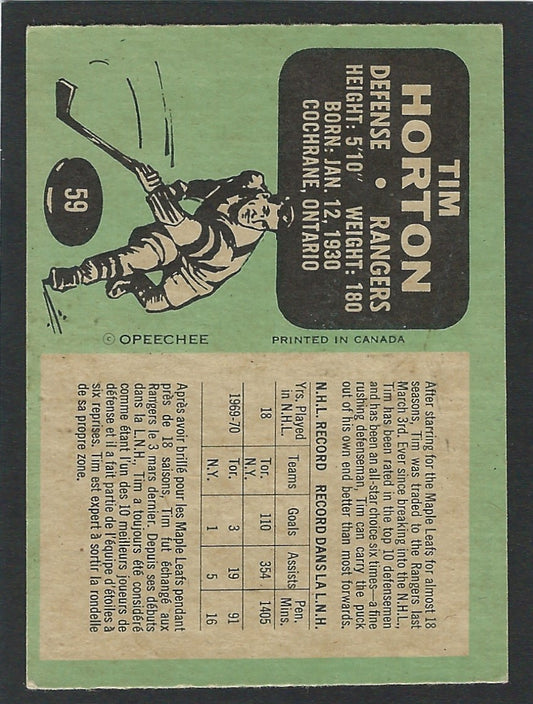 1970 O-Pee-Chee #059 Tim Horton HOF