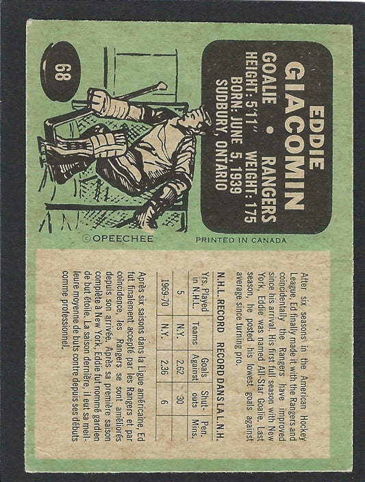 1970 O-Pee-Chee #068 Ed Giacomin HOF