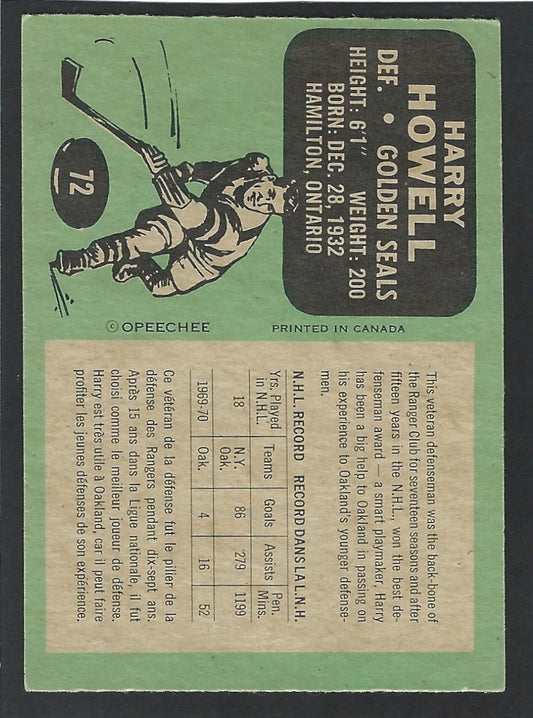1970 O-Pee-Chee #072 Harry Howell HOF