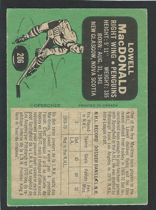 1970 O-Pee-Chee #206 Lowell MacDonald